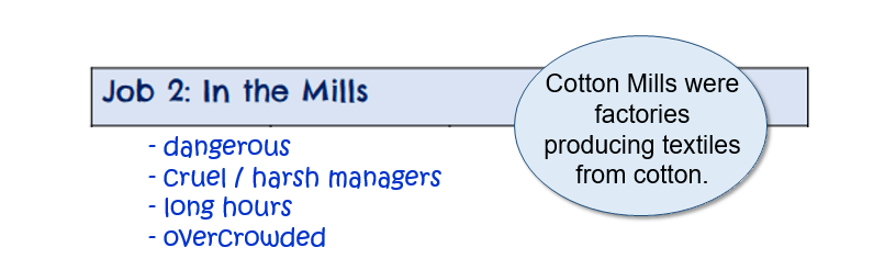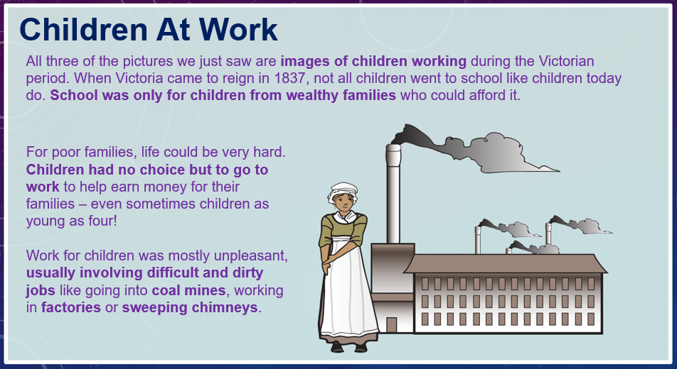 Watch these videos to find out more about what it was like for children working in the coal mines, factories, cotton mills (factories) and on the fields.