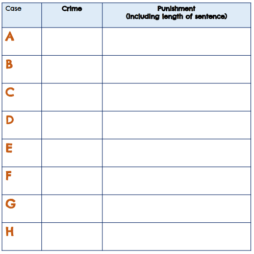 The instructionYou are now a judge in a Victorian court of law!With your group, you are in charge of deciding which punishments should fit each of the crimes on your Crimebusters cards.