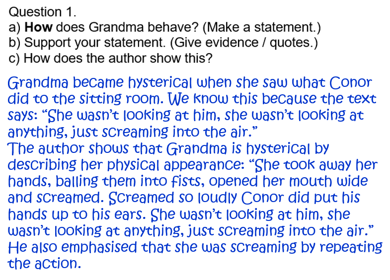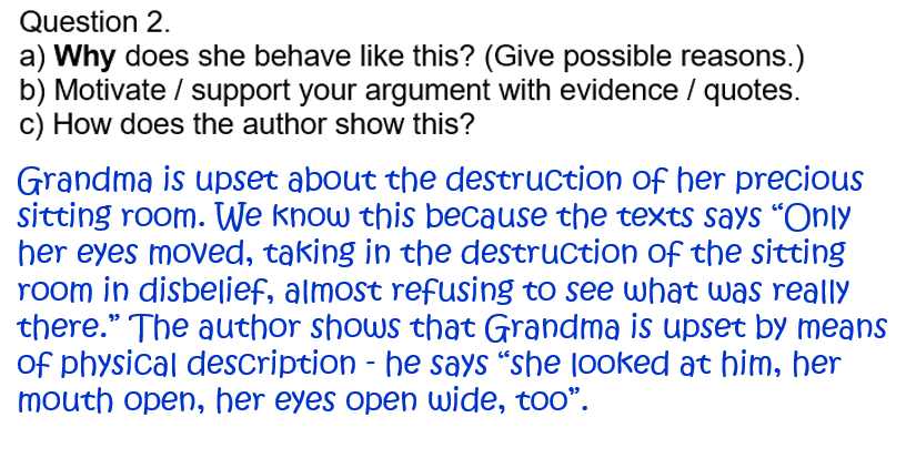 Complete the following questions on Grandma’s behaviour…