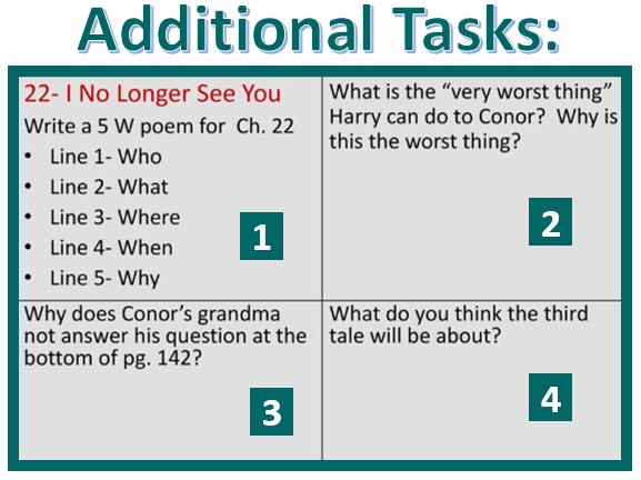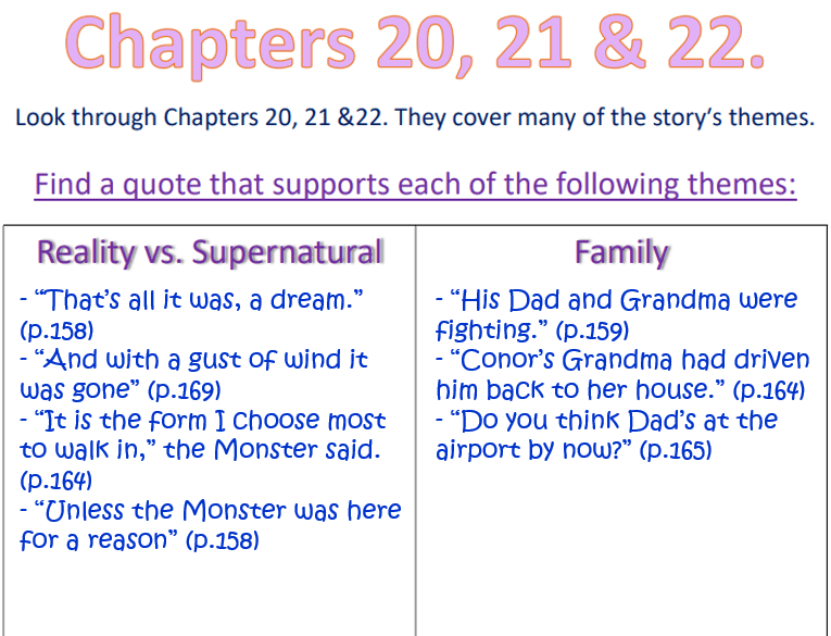 The tasks in this section come from: A Monster Calls by Patrick Ness – ppt download (slideplayer.com)