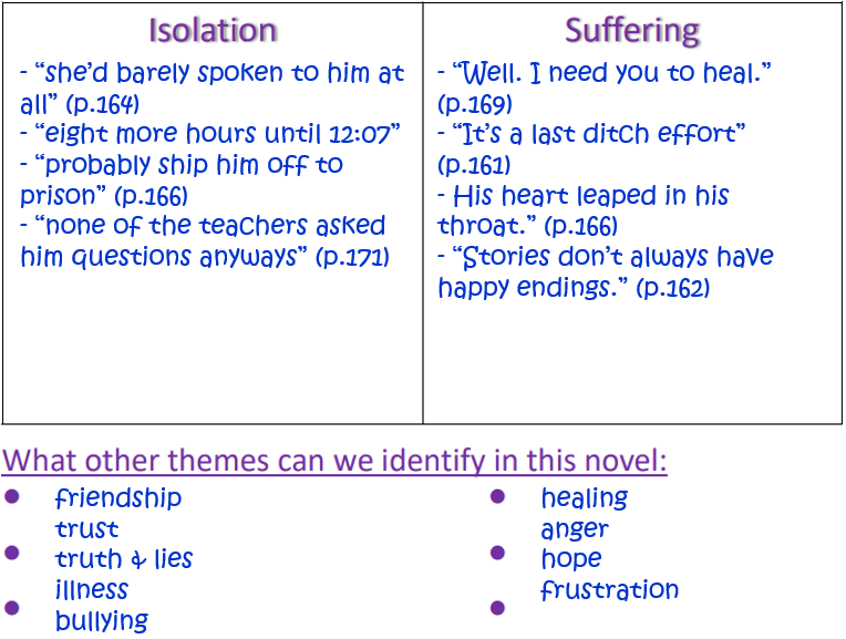 - to identify themes in this novel