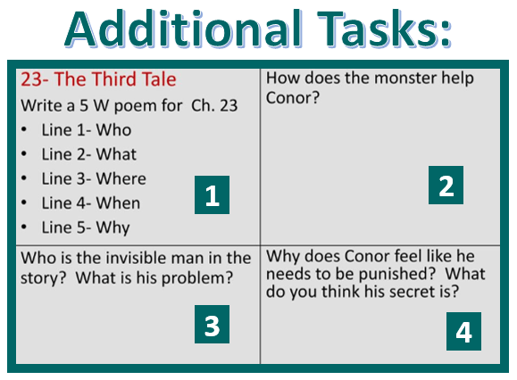 The tasks in this section come from: A Monster Calls by Patrick Ness – ppt download (slideplayer.com)