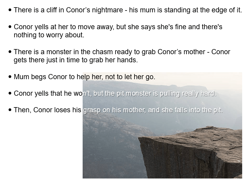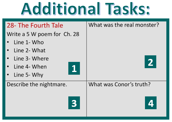 The tasks in this section come from: A Monster Calls by Patrick Ness – ppt download (slideplayer.com)