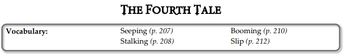 TIP: What is it that happens, that the story has been leading to, that means that the fourth tale can now be told?