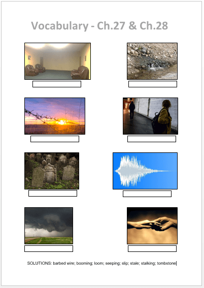 Divide a new page in your book into quadrants, add the titles (as shown below) and record your ideas about Chapter 28: