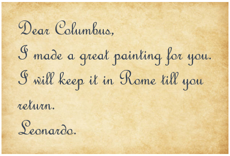 Write a secret message from Leonardo to Columbus. Then let it dry. (We will read it in another lesson.)