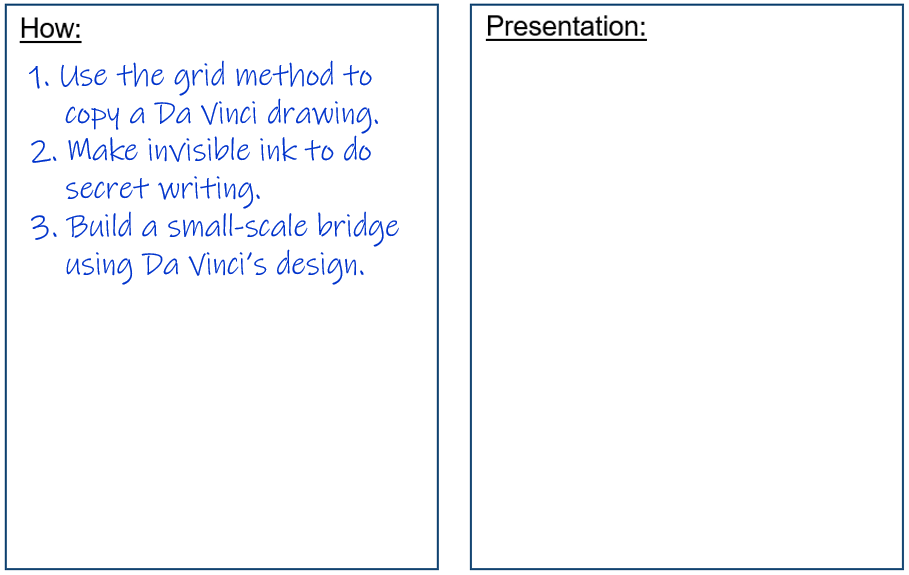 Now make one of Leonardo da Vinci’s drawings: Using the grid method, copy the part of the original art that you have been given.