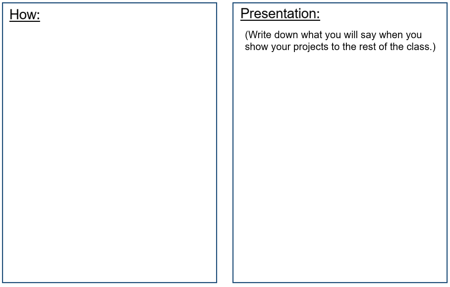 (Plan what you will say to the class on your Project sheet.)