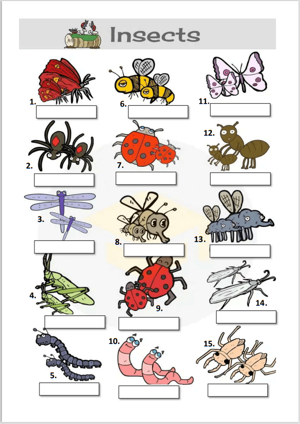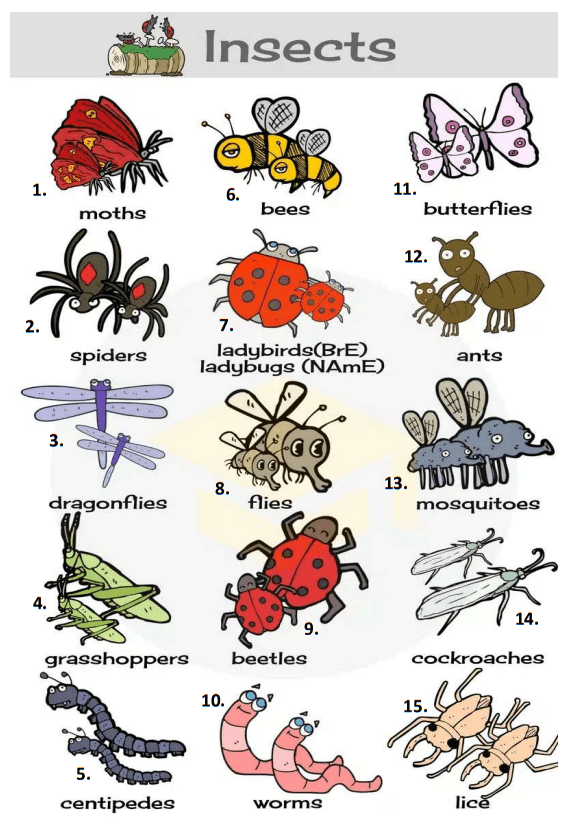 English Vocabulary – TYPES OF BUGS and INSECTS. (1:32 minutes long)