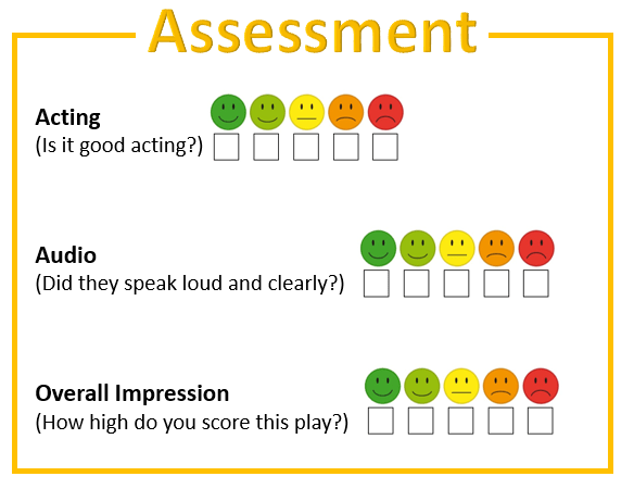 Each group will assess the performance of other groups. (Use the assessment form to judge how well a group has done.)