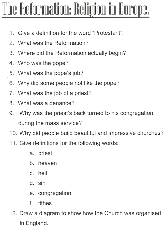 Let’s revise from the previous lesson: Religion in Europe before the Reformation.