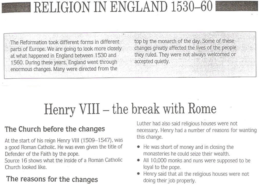 Today you are going to learn more about the reformation in England…