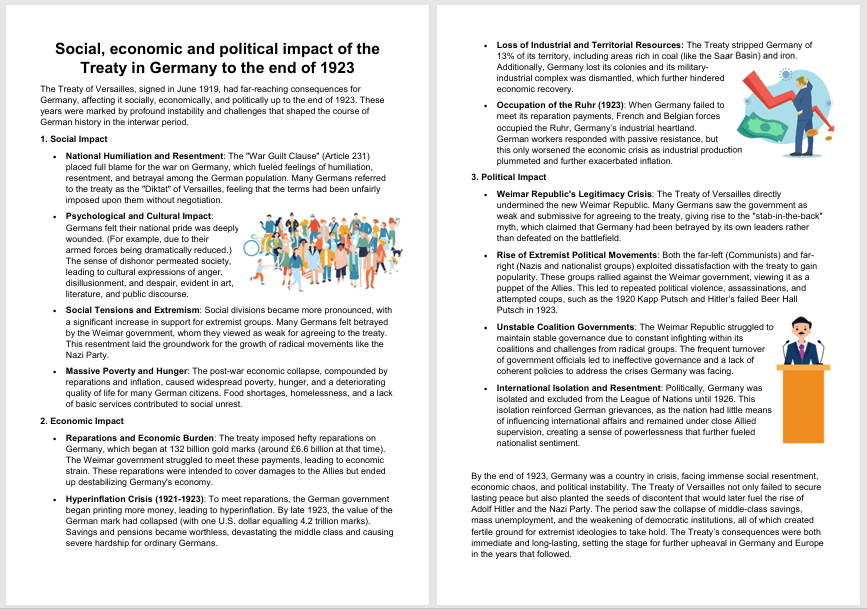 Below is very useful information on the Social, Economic, and Political Impact of the Treaty f Versailles on Germany.