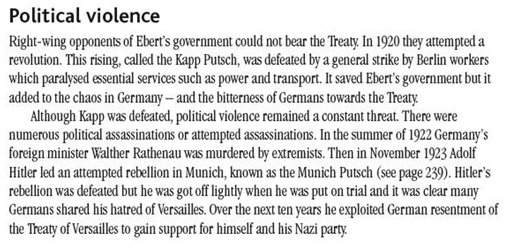 The notes on “The Immediate Impact of the Treaty of Versailles on Germany”, p.25
