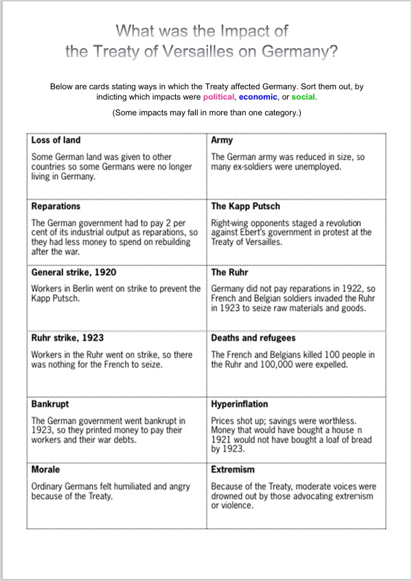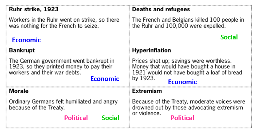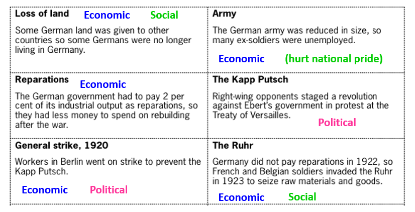 To summarise, here are the social, political and economic impacts of the Treaty of Versailles on Germany: