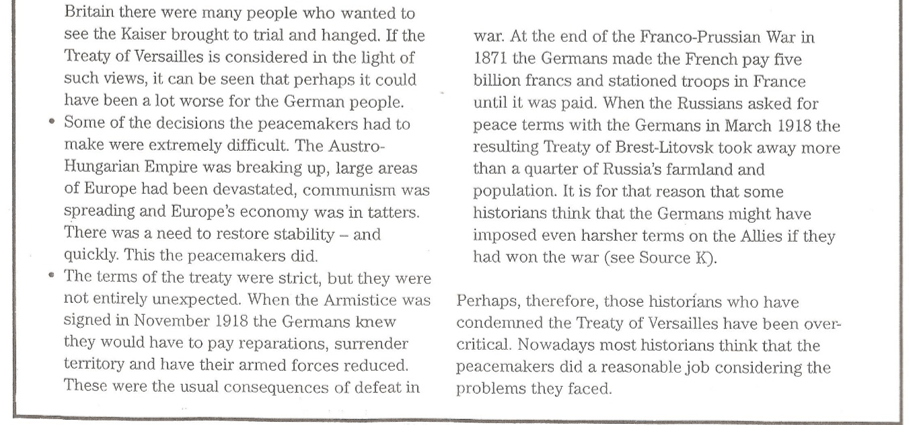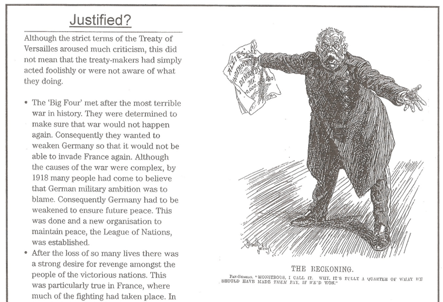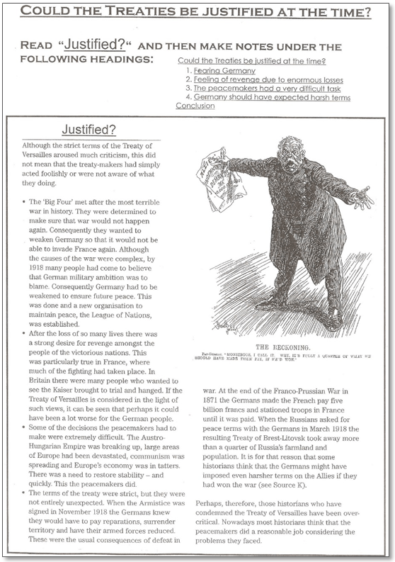 Today you are going to examine whether the Treaty of Versailles could be justified at the time, by doing a study task…