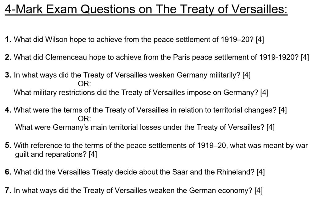 5. With reference to the terms of the peace settlements of 1919–1920, what was meant by war guilt and reparations? [4]