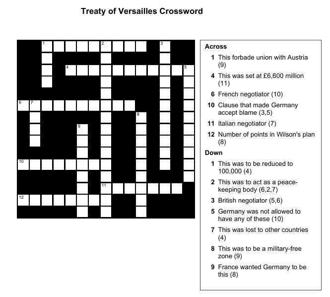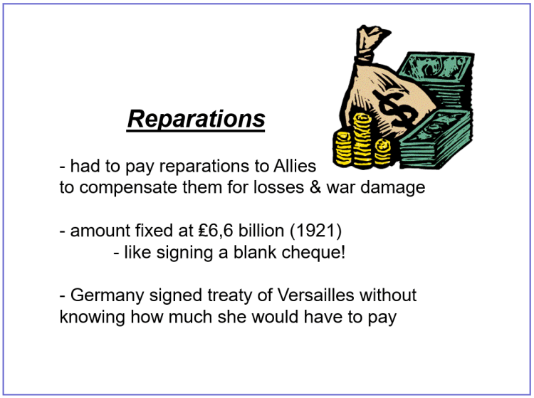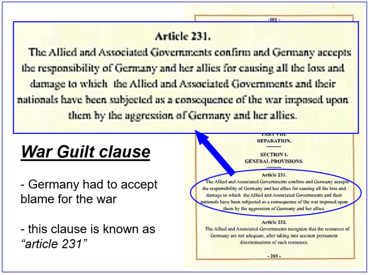 Today you are going to look at some of the terms of the Treaty of Versailles….