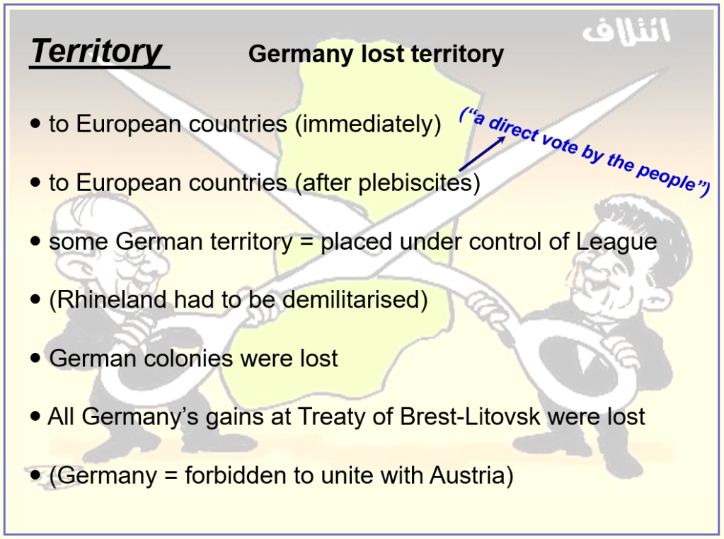 Today you are going to look at the territorial terms of the Treaty of Versailles….