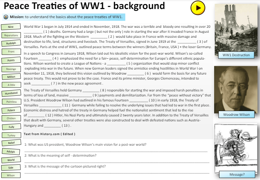 Today you are going to do tasks related to the terms of the Treaty of Versailles, to test your knowledge and understanding….