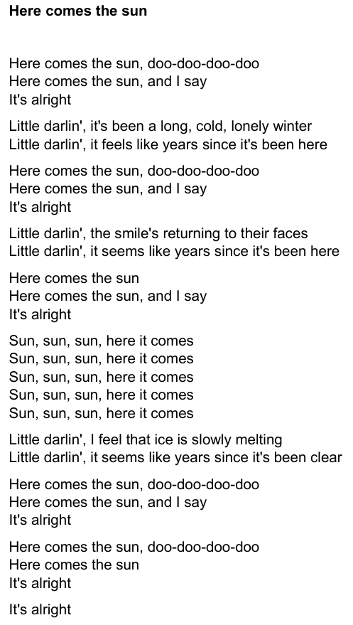 The Beatles – Here Comes The Sun Lyrics. (3:09 minutes long)