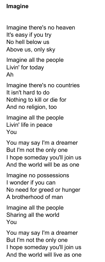 “Imagine” by John Lennon – Children’s Book Singalong. (3:22 minutes long)