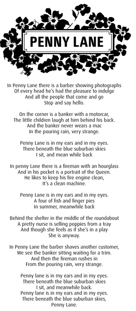 The Beatles – Penny Lane Lyrics. (3:09 minutes long)
