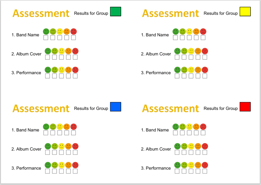Each group will be assess by the teachers and monitors. (Use the assessment form to judge how well a group has done.)