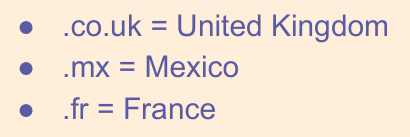 Here are the ends of some web addresses. Some tell you where the website may originate from. Where do you think these are from?