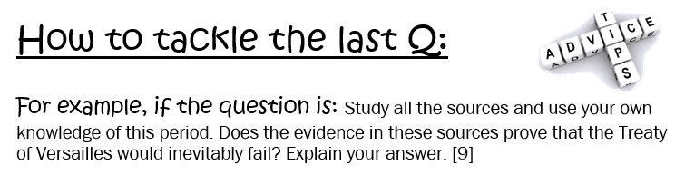 Here is an example answer to the last question in a Paper 2. (The example is from an exam paper about the Treaty of Versailles.)