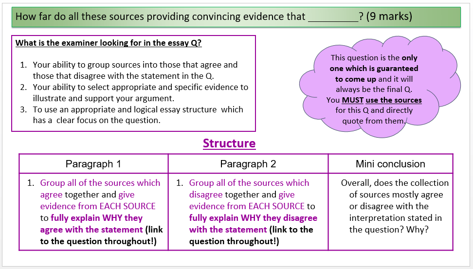 Now we are going to look at the last question in the Paper 2 exam. You are required to use all the sources for this final question.