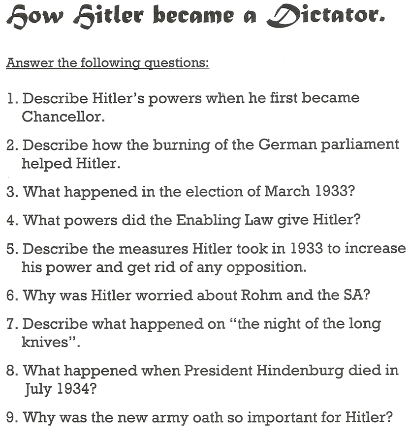 Today you are going to continue with tasks on how Hitler became Chancellor of Germany, then Dictator, and the Führer…