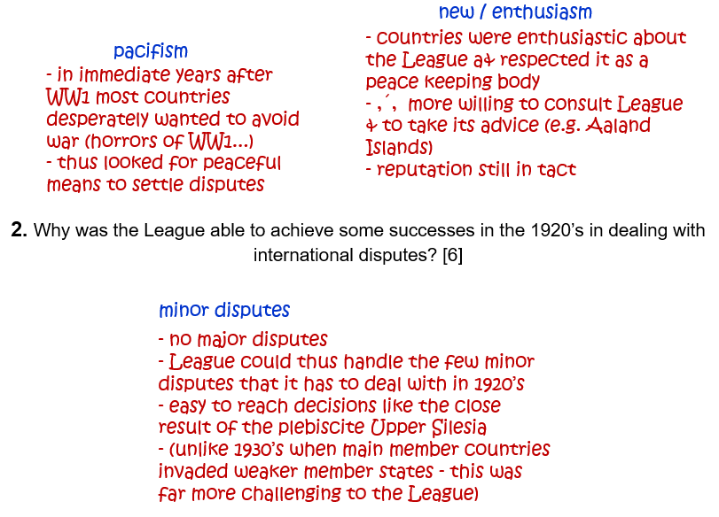 2. Why was the League able to achieve some successes in the 1920’s in dealing with international disputes? [6]