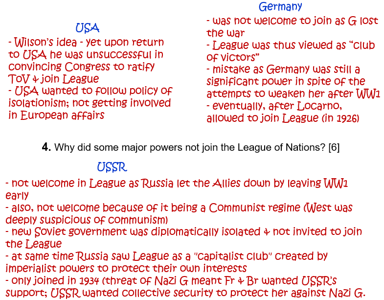 4. Why did some major powers not join the League of Nations? [6]