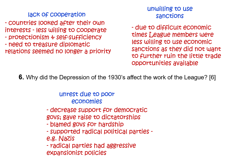 3. Why did the Depression make the work of the League more difficult? [6]