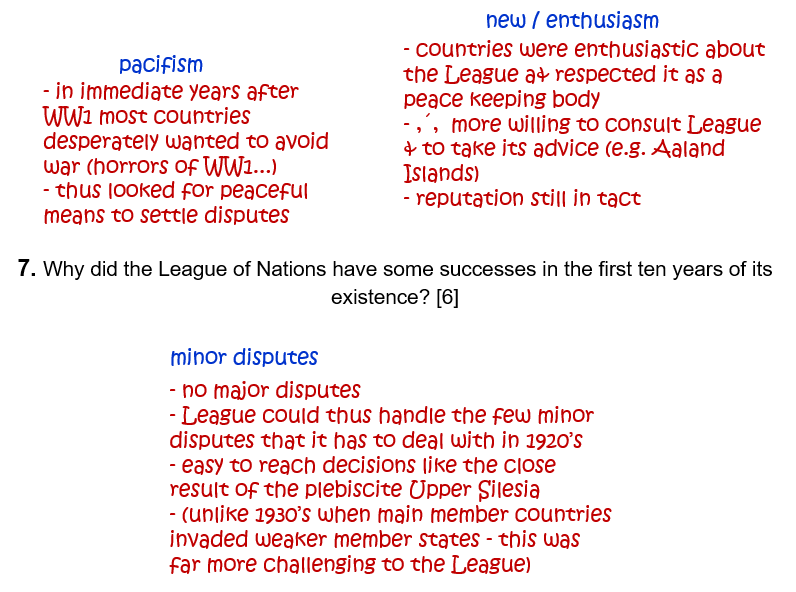 7. Why did the League of Nations have some successes in the first ten years of its existence? [6]