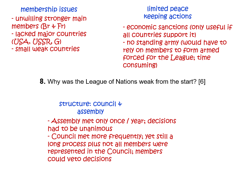 8. Why was the League of Nations weak from the start? [6]