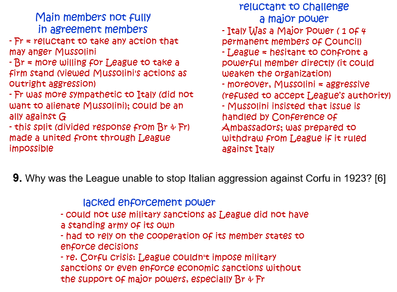9. Why was the League unable to stop Italian aggression against Corfu in 1923? [6]