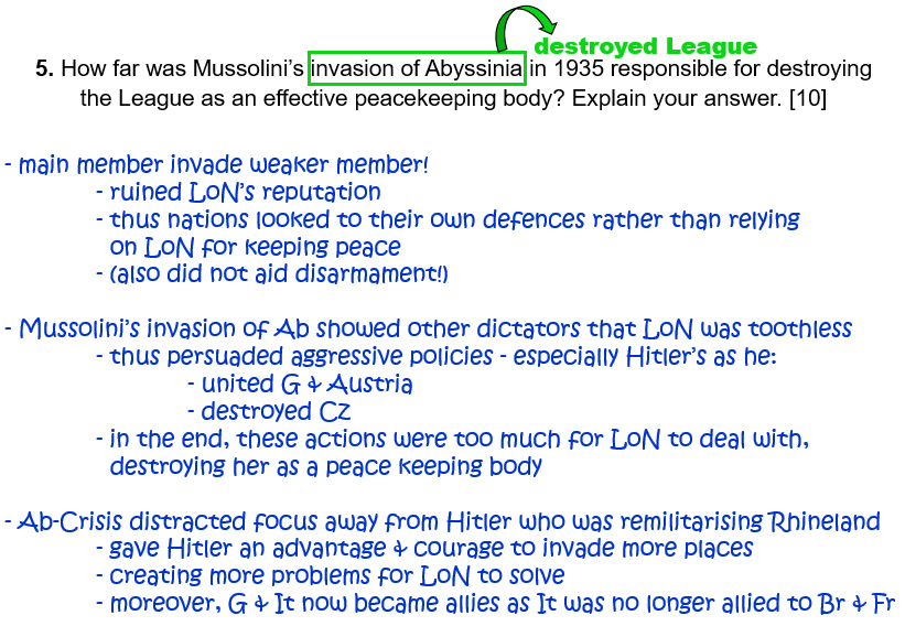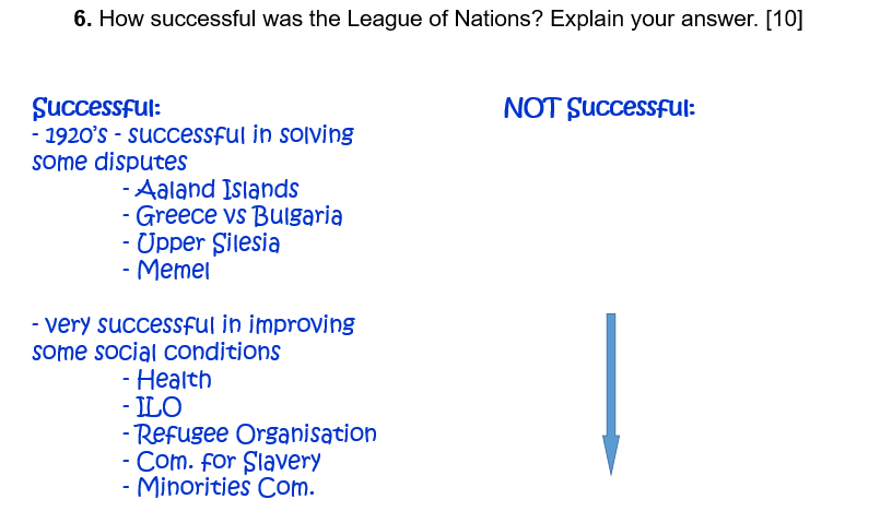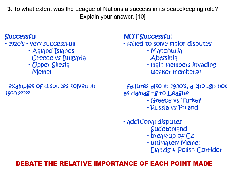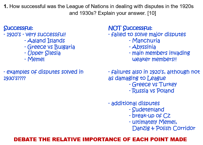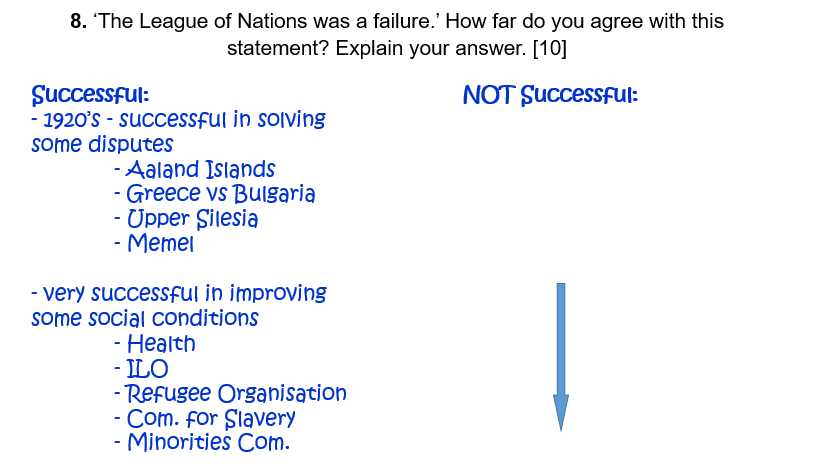 Look at Paper 1 Questions on: The League of Nations.