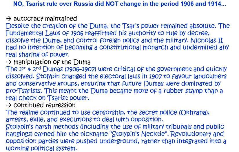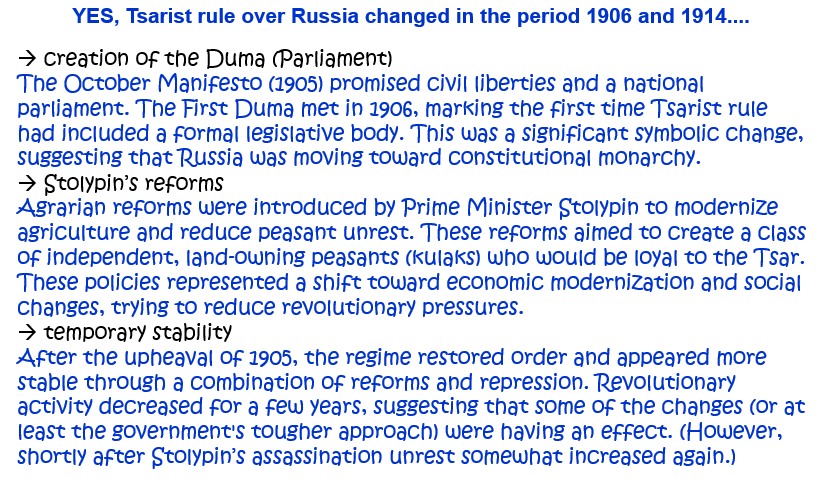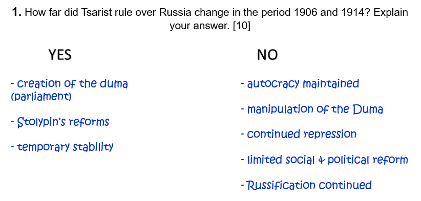 1. How far did Tsarist rule over Russia change in the period 1906 and 1914? Explain your answer. [10]