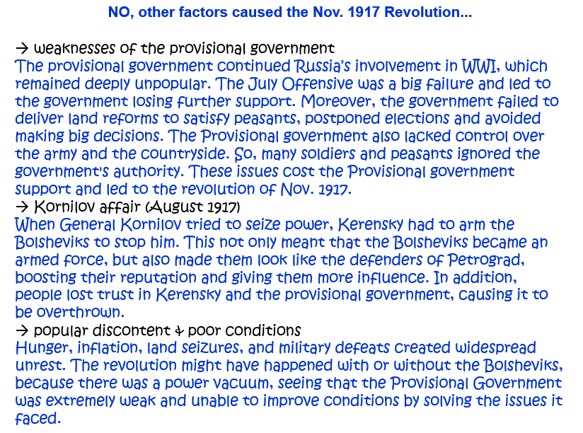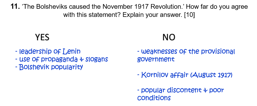 11. ‘The Bolsheviks caused the November 1917 Revolution.’ How far do you agree with this statement? Explain your answer. [10]