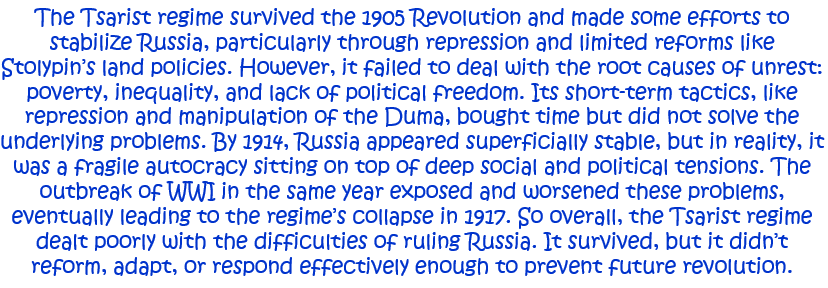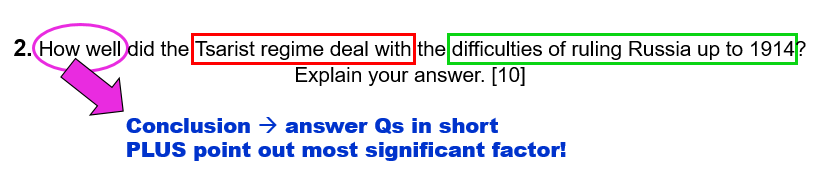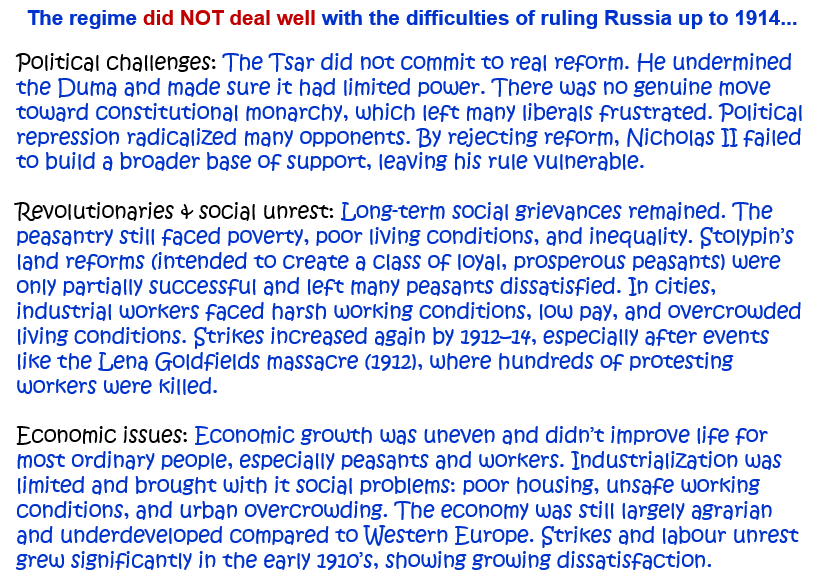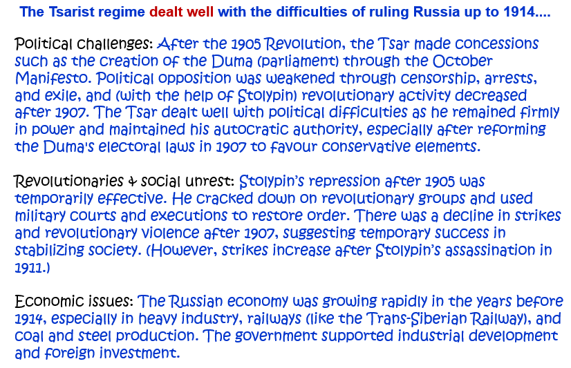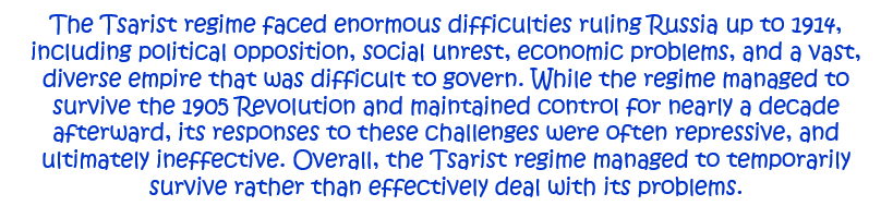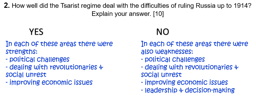 2. How well did the Tsarist regime deal with the difficulties of ruling Russia up to 1914? Explain your answer. [10]