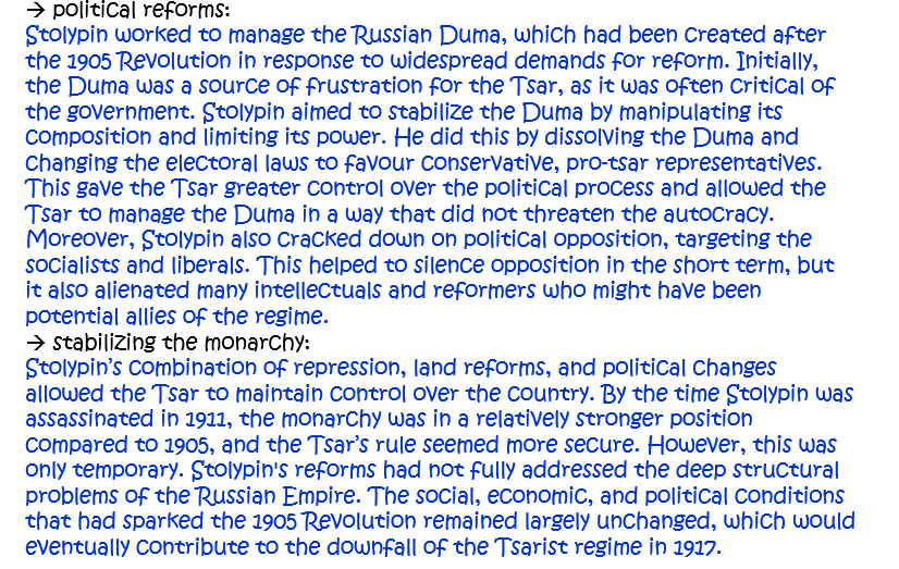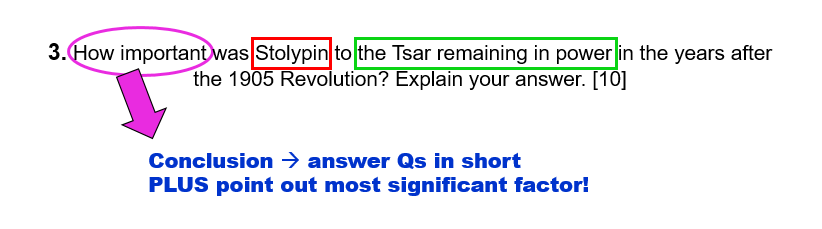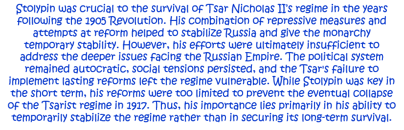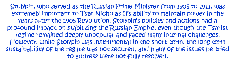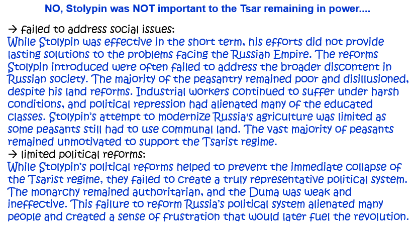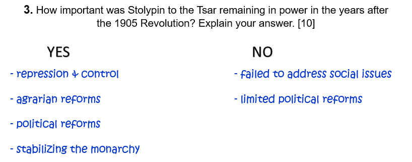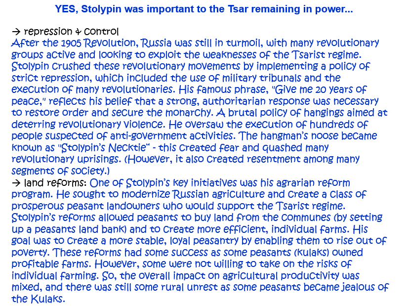 3. How important was Stolypin to the Tsar remaining in power in the years after the 1905 Revolution? Explain your answer. [10]