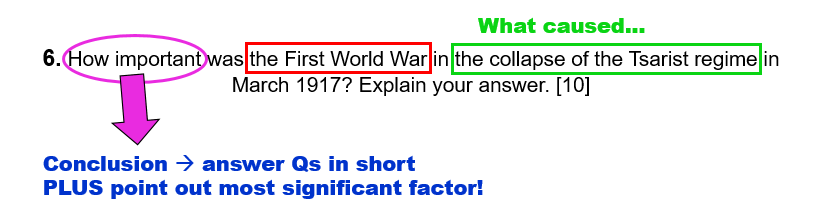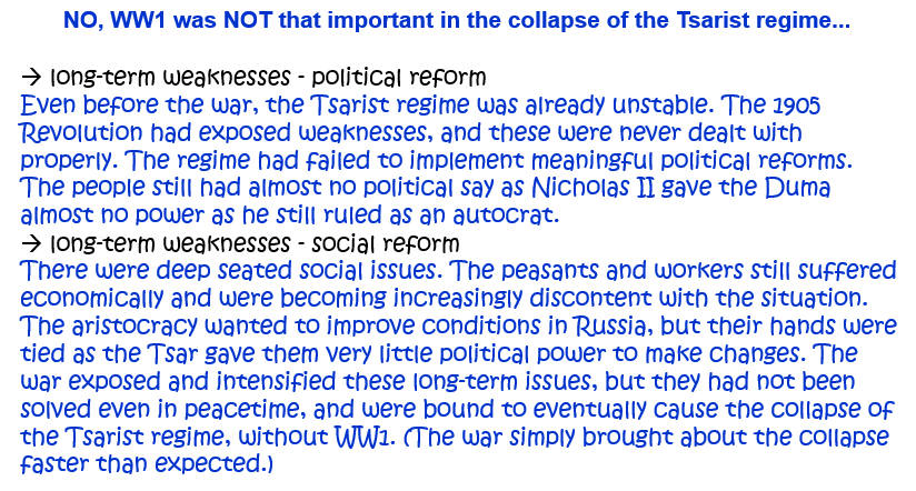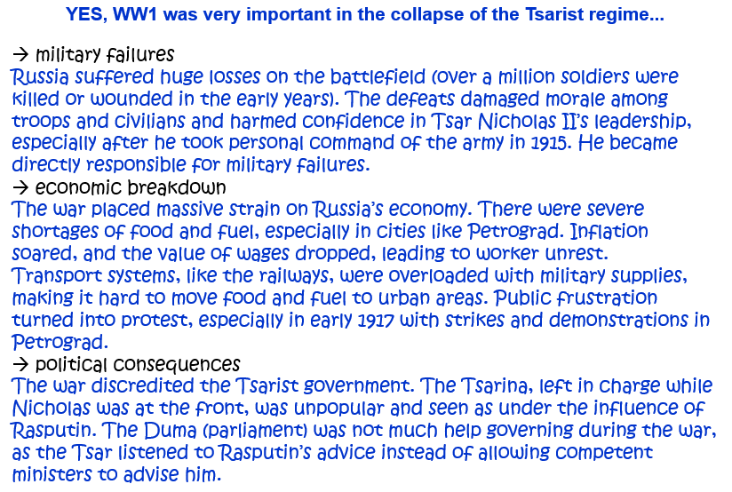 OR: ‘The First World War caused the collapse of Tsarism in Russia in 1917.’ How far do you agree? Explain your answer. [10]