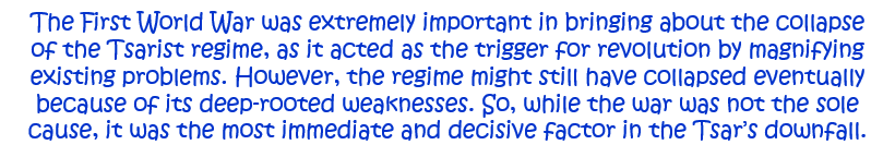 6. How important was the First World War in the collapse of the Tsarist regime in March 1917? Explain your answer. [10]