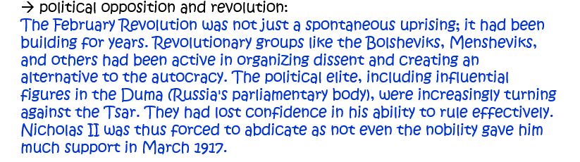 5. Which of the following was more responsible for revolution in Russia in 1917: the role of the Tsarina and her relationship with Rasputin; food shortages? Explain your answer. [10]