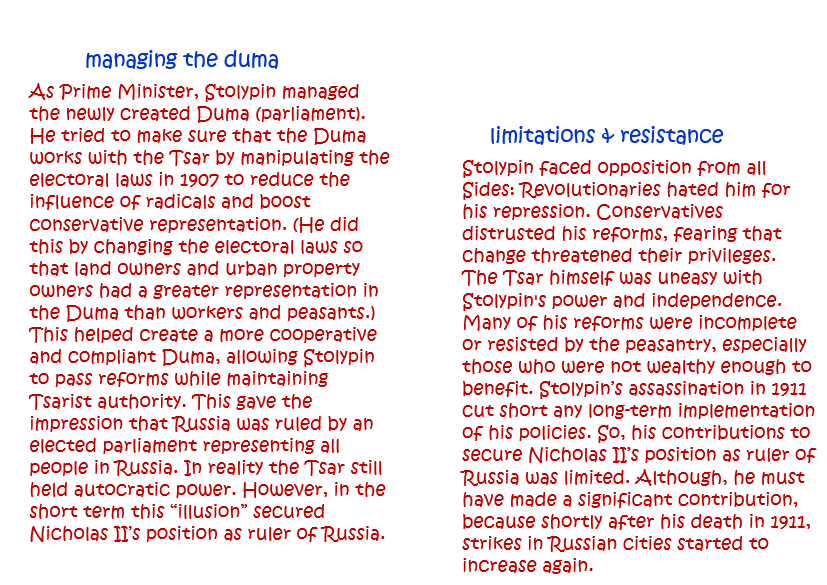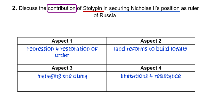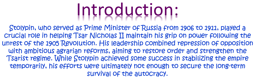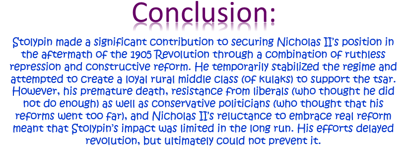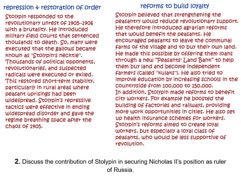 2. Discuss the contribution of Stolypin in securing Nicholas II’s position as ruler of Russia.