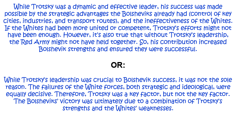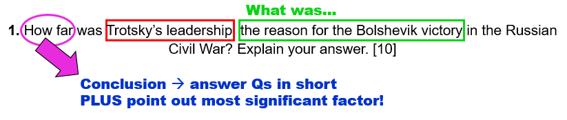 1. How far was Trotsky’s leadership the reason for the Bolshevik victory in the Russian Civil War? Explain your answer. [10]
