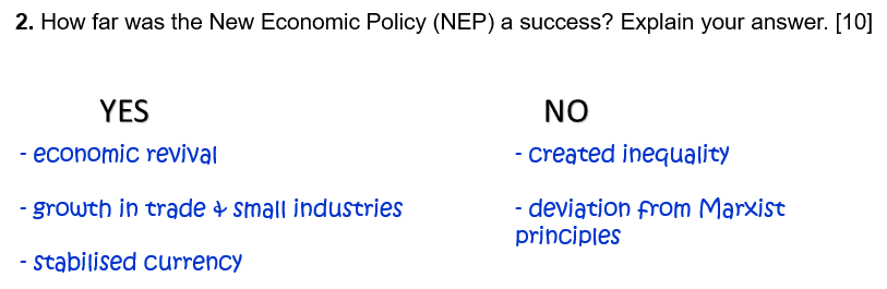 2. How far was the New Economic Policy (NEP) a success? Explain your answer. [10]