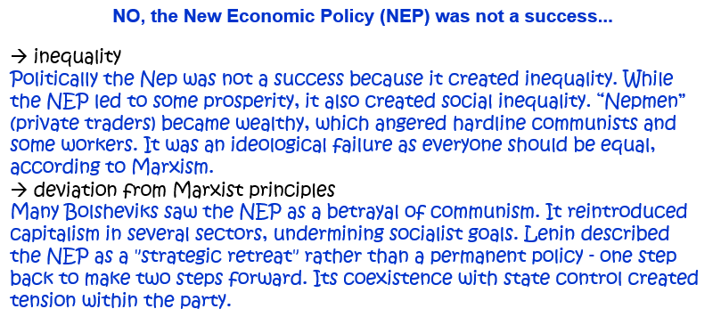 OR: How successful was Lenin’s New Economic Policy? Explain your answer. [10]